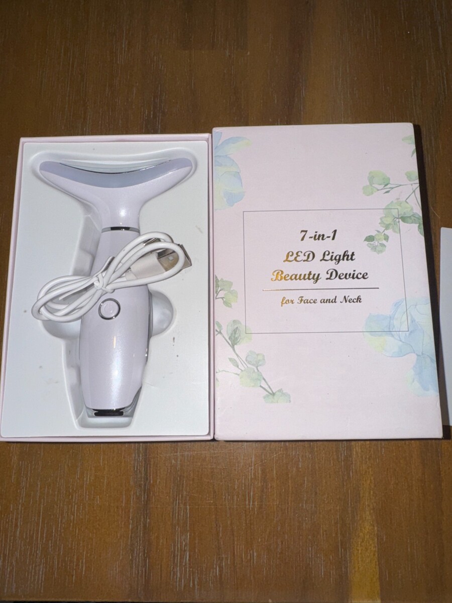 This 7-in-1 LED Light Beauty Device is designed for face and neck care. Features include: