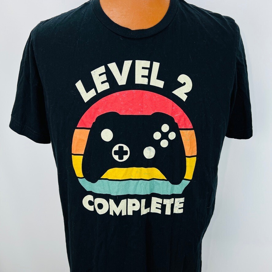 Play Station Level 2 Complete T Shirt XL Gamer JoyStick Controller Black Game