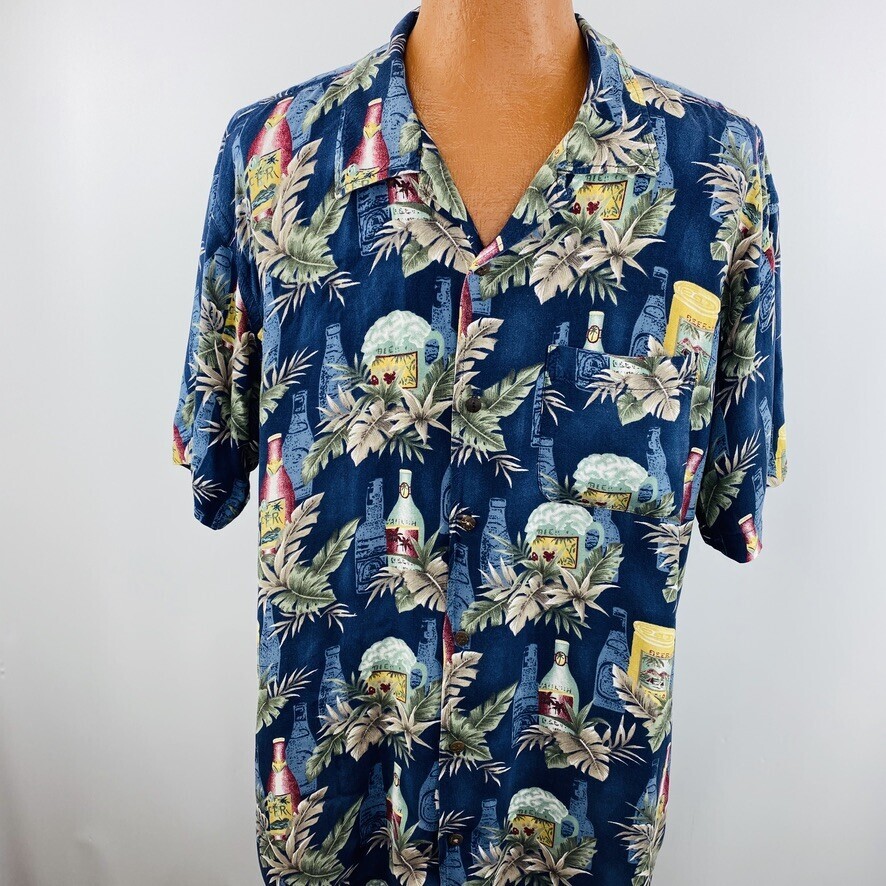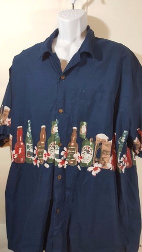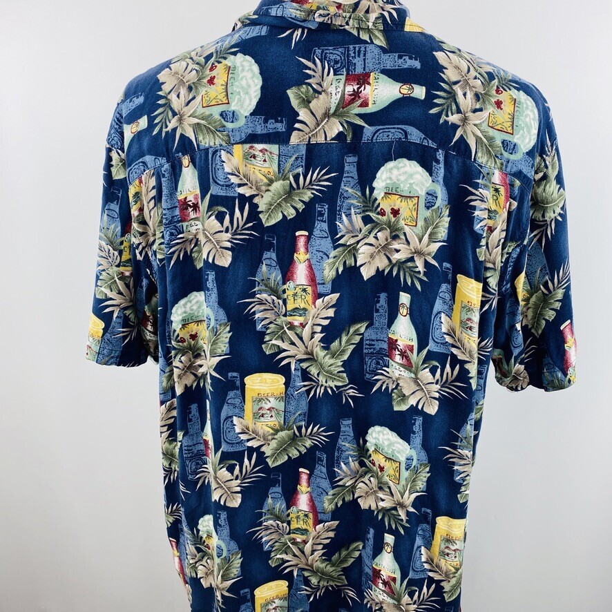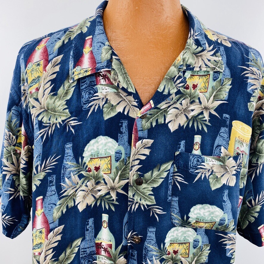 Steve Barrys Hawaiian Aloha XXL Blue Shirt Beer Cocktails Palm Leaves