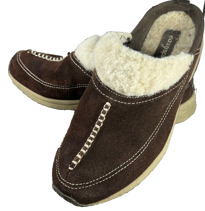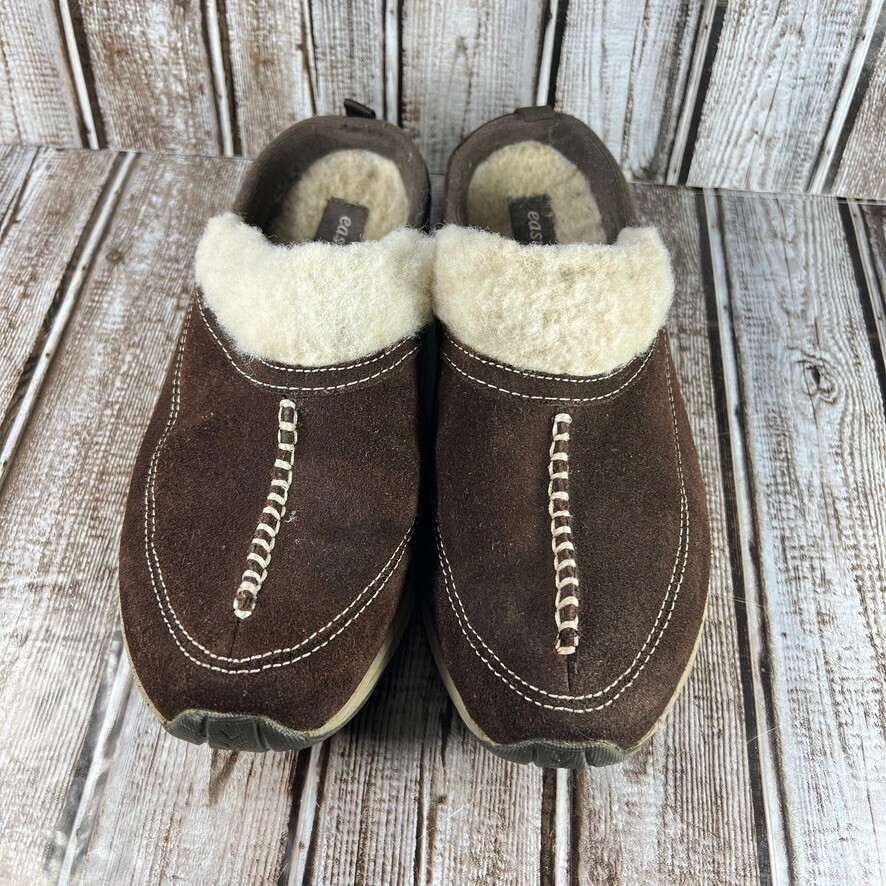 Easy Spirit Estravelwind 8 M Slip On Clogs Mules Brown Suede Sherpa Lined