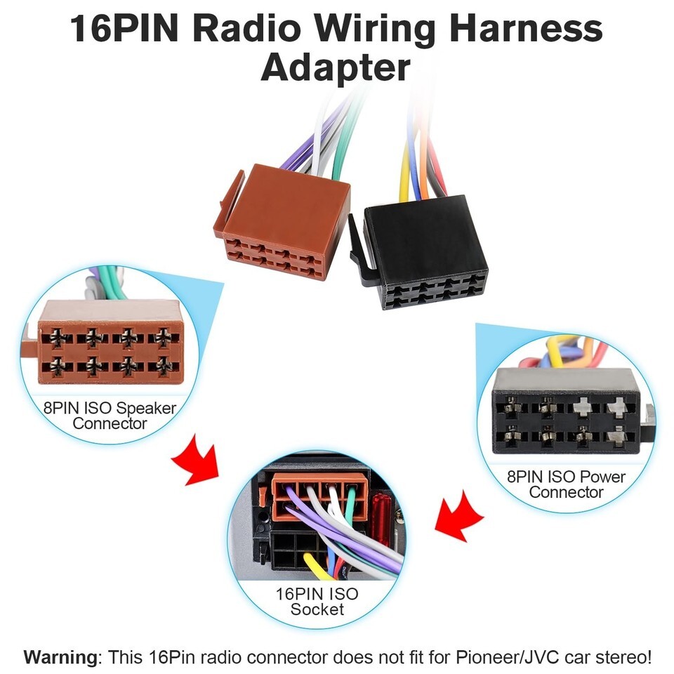 16 pin iso stereo connector directly to 24pin factory radio adapter, fit for universal car CD DVD audio video receiver, quick connection and installation, Picture 3. Packing List: 1xCar Stereo Harness Adapter Kit, F to M
