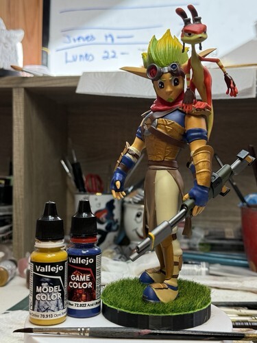 Figura decorativa de Daxter de aproximadamente 15 cm de altura, impresa en filamento PLA y pintada a mano, cuidando cada detalle para lograr un acabado vistoso y de calidad.