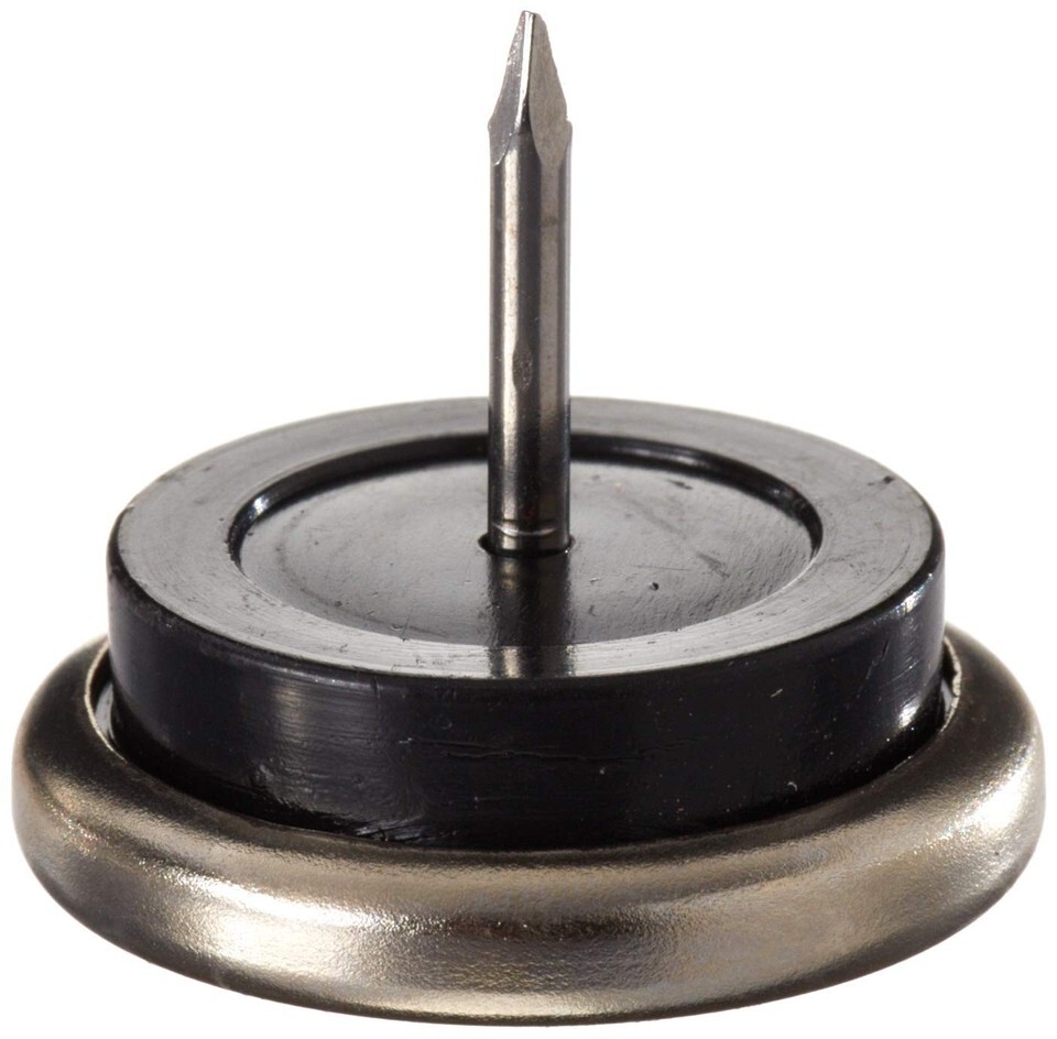 For installation in wooden legs. Helps furniture move smoothly over flooring. Nickel and plastic base.