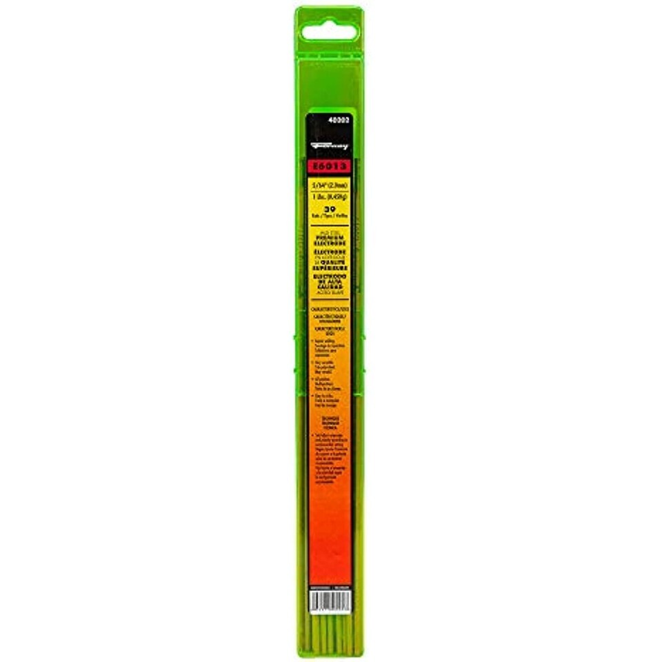 E6013 mild steel general purpose is an all-position, general purpose rod with medium to shallow penetration. Medium to heavy slag is easily removed. Excellent for poorly fitted joints. Smaller sizes of rod are well suited to low heat on thin metals. Use on all types of mild steel where ease of operation and good appearance is required. Great for light gauge metal, sheet metal, duct work, etc.