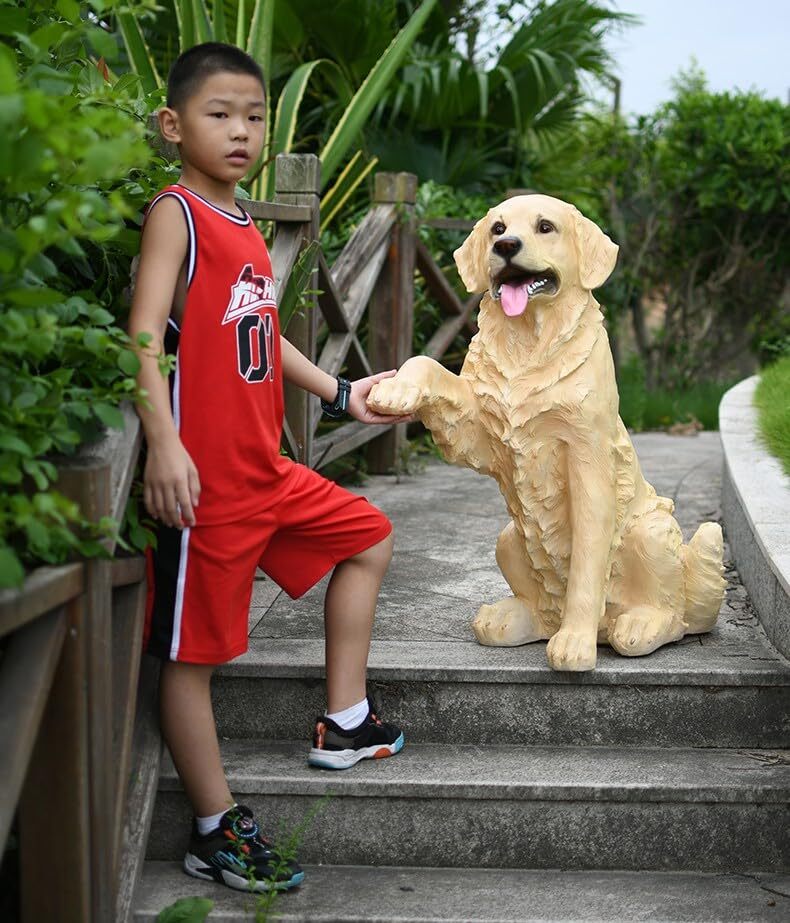 interoknack Life-Size Golden Retriever Outdoor Statue, Realistic Sitting Dog Scu