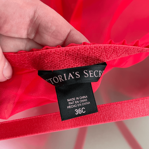 New without tags, Victoria?s Secret watermelon red nylon mesh and lace padded bra or Teddy. Opens in the front. Padded cups. Adjustable straps and geometric strapping detail front and back. You must provide your own panties.