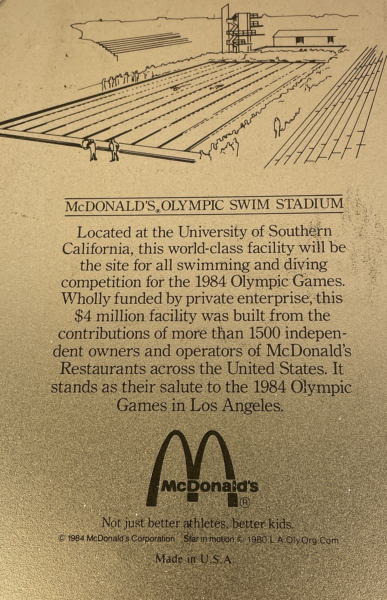 OLYMPIC Games Tin Tray XXIII Olympiad Los Angeles 1984 Plate McDonald Race Relay