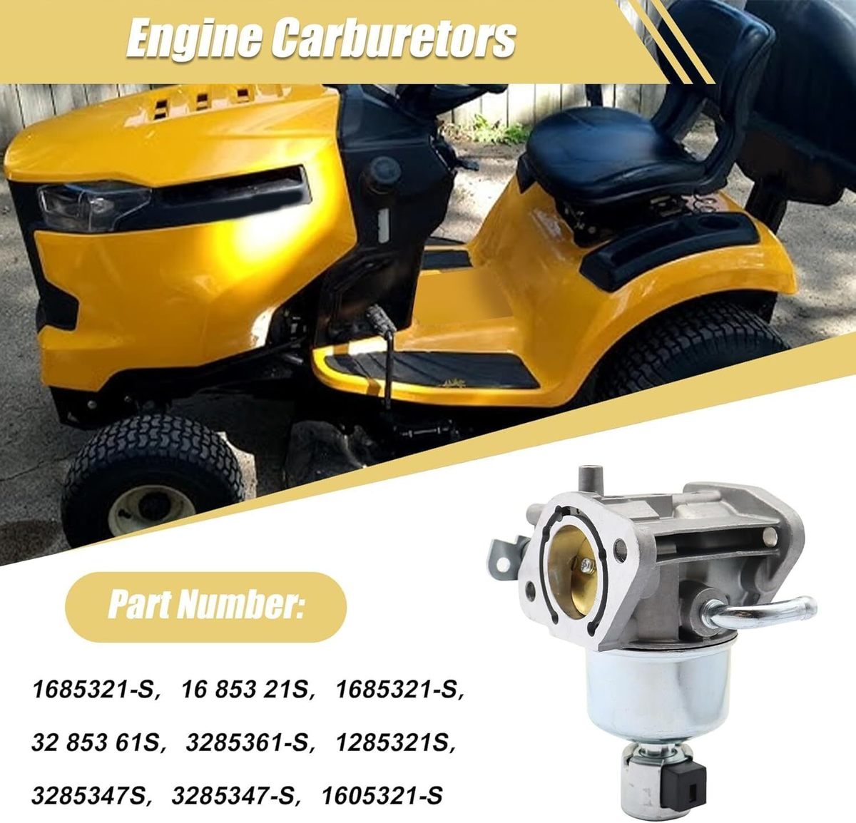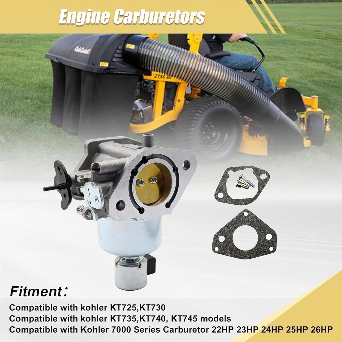 Fitment:Compatible With Kohler 7000 Series Carburetor 22HP 23HP 24HP 25HP 26HP.Compatible With kohler KT725,KT730,Compatible With kohler KT735, KT740, KT745 models Part Number:1685321-S,16 853 21S,1685321-S,32 853 61S,3285361-S,1285321S,3285347S,3285347-S,1605321-S Package includes: 1 pcs Carburetor, 2 pcs Gasketas, 1 pcs Screw kit Strict Quality Control: We implement strict quality control standards before the products reach you. Each product is inspected and tested several times before shipment Service: If you encounter any problems during the purchase and use, please send us a message, we will be at your service