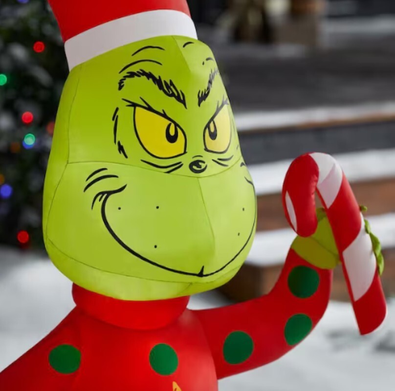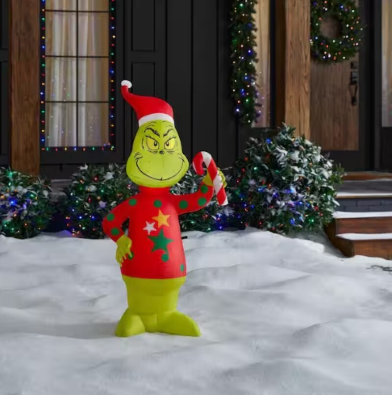 this 4 ft. Grinch inflatable! Dressed in a delightfully ugly sweater and