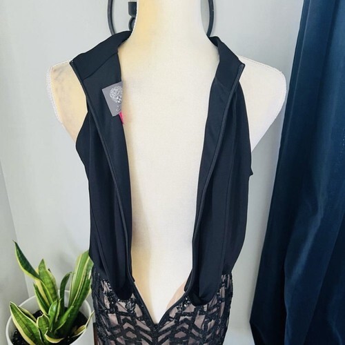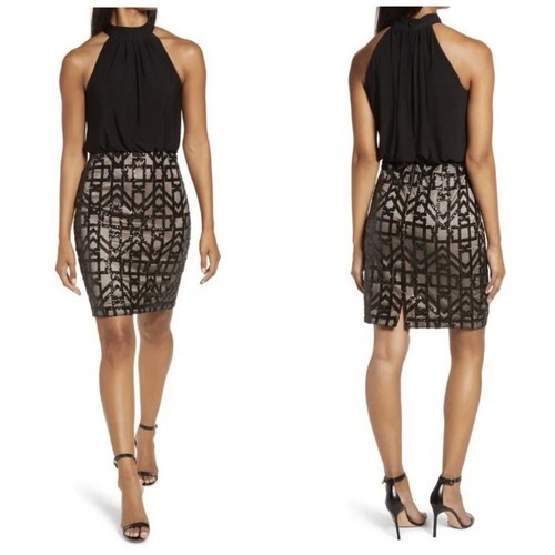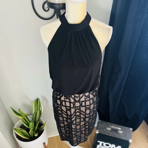VINCE CAMUTO Sequin Detail Halter Neck Cocktail Dress, Black, Size 4, NWT