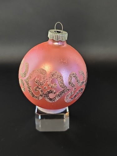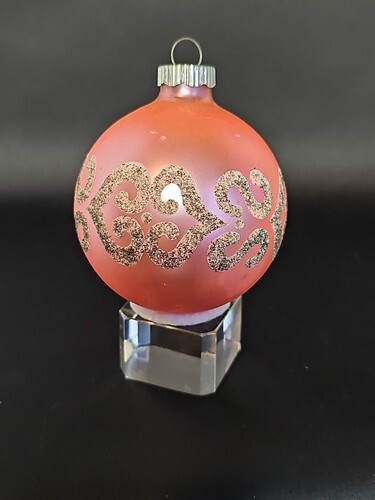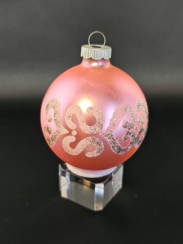 UP FOR SALE: Vintage 50?s Shiny Brite Satin Pink Silver Mica Mercury Glass Ornament