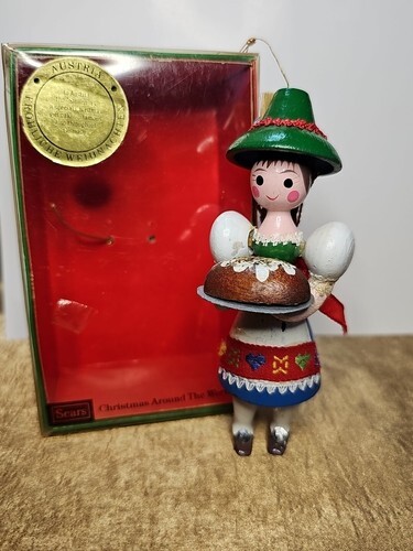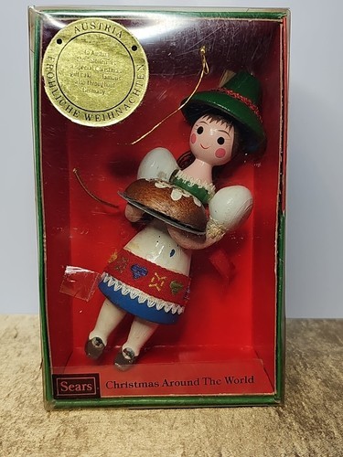 Vintage 80s Sears Roebuck Wooden Ornament Christmas Around The World Austria