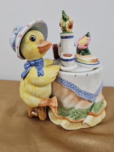 Vintage Fitz & Floyd Somerset Figural Anthropomorphic Duckling Lidded Sugar Dish