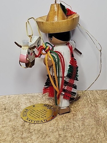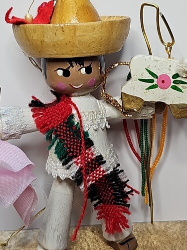 Vintage 80s Sears Roebuck Wooden Ornament Christmas Around The World Mexico