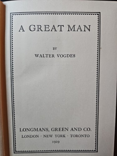 UP FOR SALE: 1929 A Great Man HC Walter Vo?des First Edition New York/London/Toronto: Longmans, Green and Co.