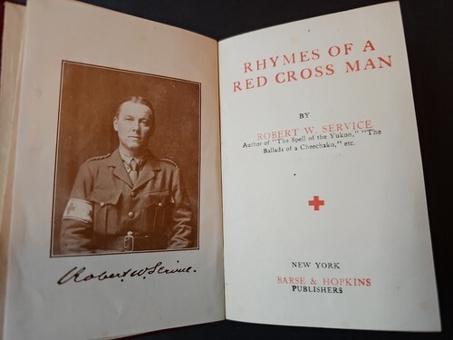 UP FOR SALE: Book Rhymes of a Red Cross Man, by Robert W Service, pub 1916, Base Hopkins; 190 pristine pages of rhymes, in 3.5" x 5" cover