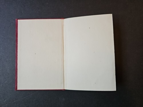 This small book features a grained red cover and gold embossed title, and very thin tissue like paper pages