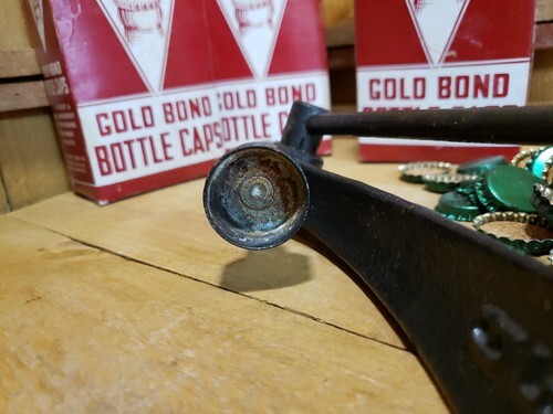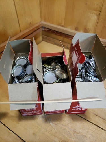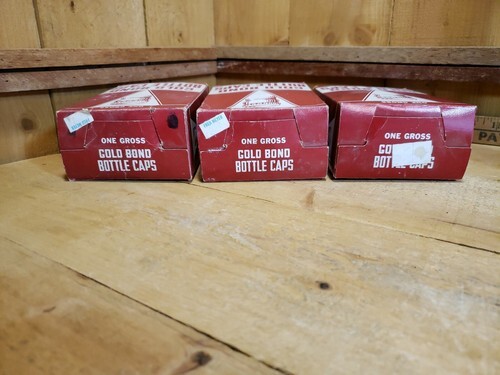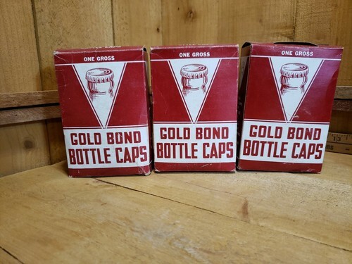 There are 3 boxes, (new and unopened and opened that will need cleaning -seals do look fine), of Vintage Gold Bond Bottle Caps and a small amount of unmarked green cork lined caps. REFER TO PHOTOS FOR A BETTER VISUAL DESCRIPTION