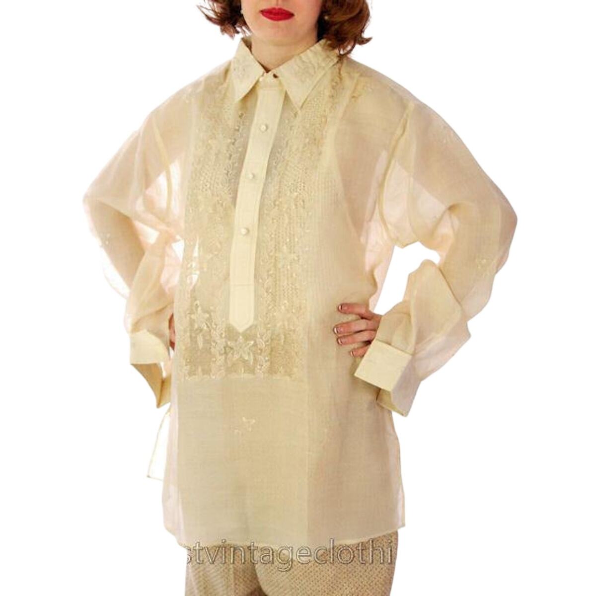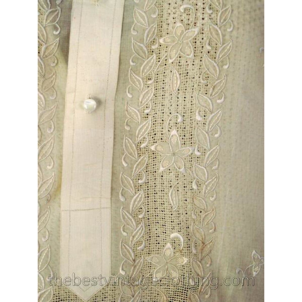 VTG 1920s Manila Shirt Embroidered Silk Organdy Tesoros Mens Unisex L