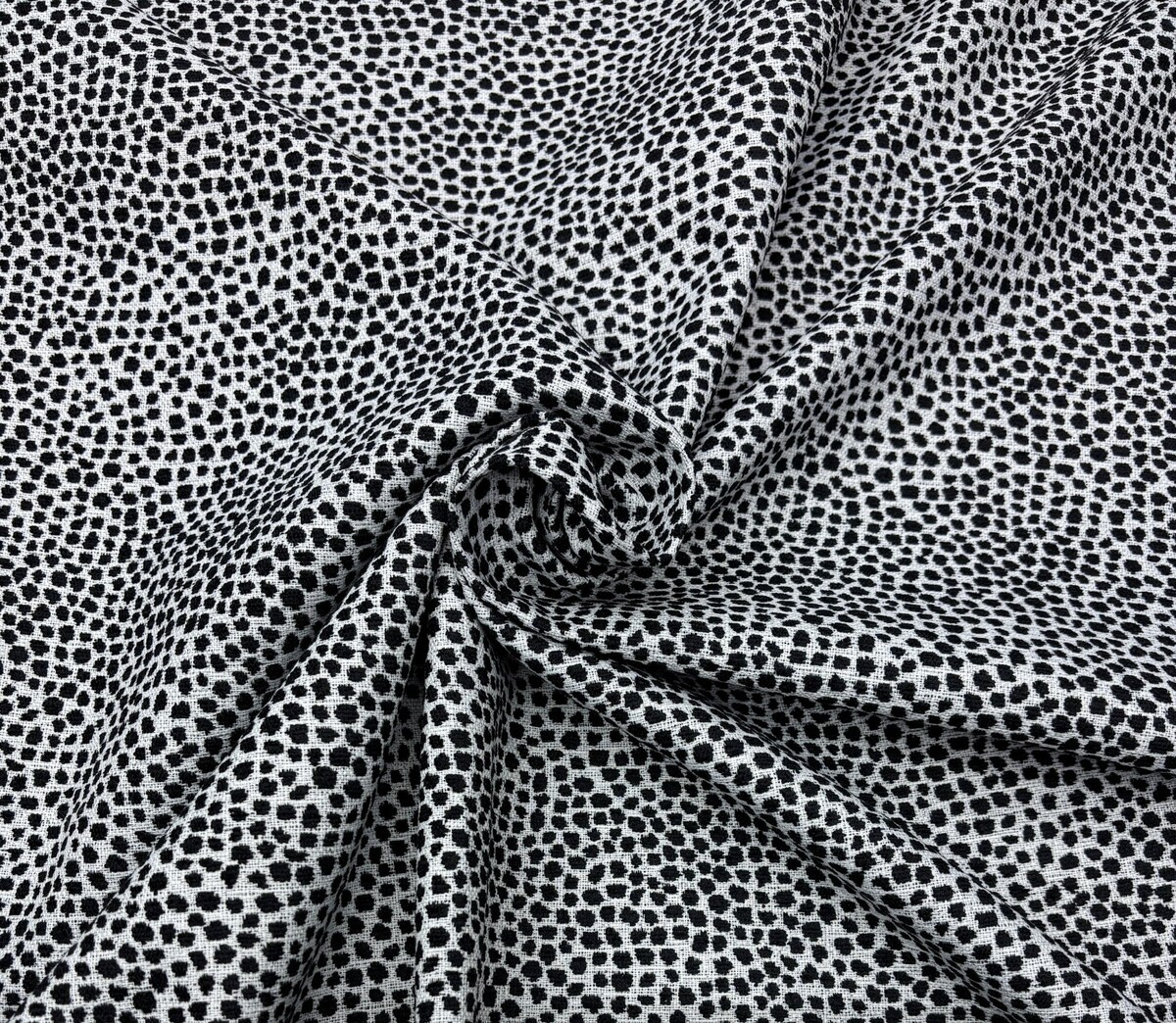 THIS EASY GOING FABRIC GOES GREAT WITH OTHER PRINTS AND SOLIDS. THE RAISED DOT DESIGN IS WOVEN OF EBONY BLACK, EASY-CARE POLYESTER WITH THE SOFT, COZY FEEL AND TEXTURE OF CHENILLE.