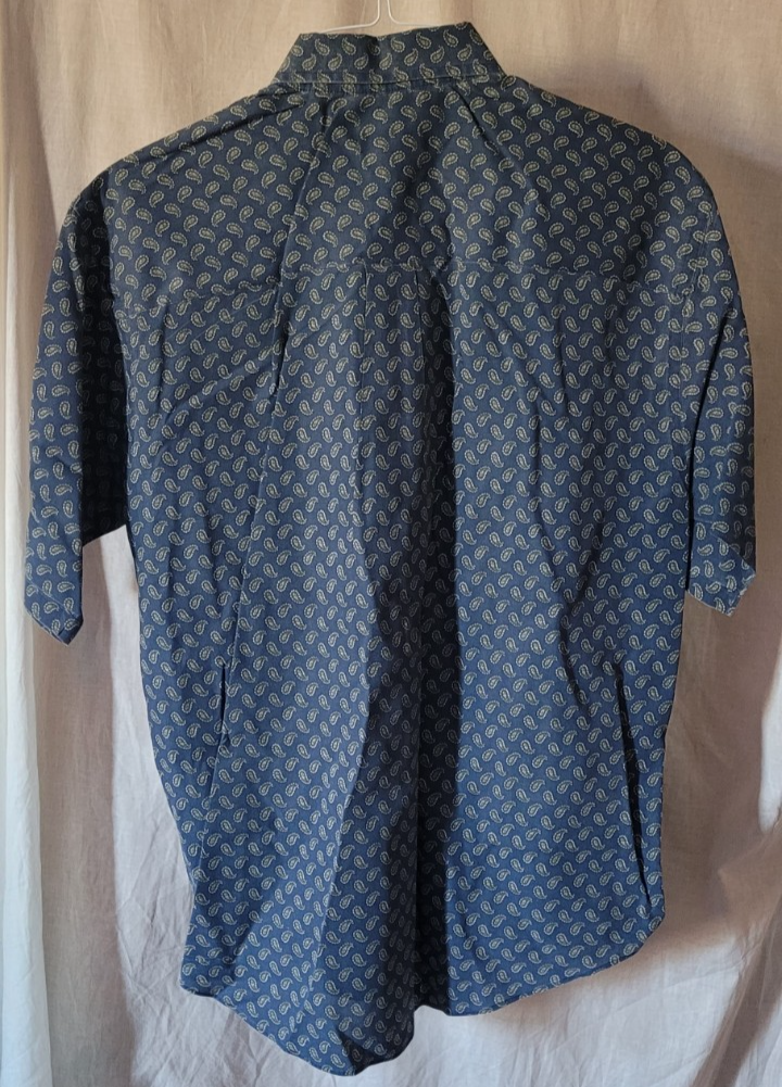 This shirt is in good used condition. There are no holes or stains that I found. The size is medium with a 15.5-16 neck. Measurements are approximately: Length: 27 inches. Pit to Pit: 24 inches. Sleeve:22 inches.