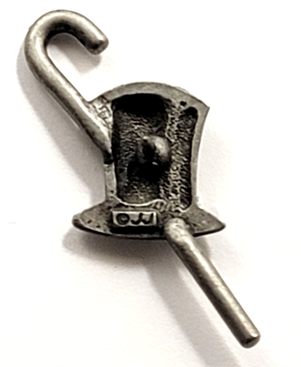 Top Hat Cane Signed JJ Jonette Silver Tone Enamel Pin