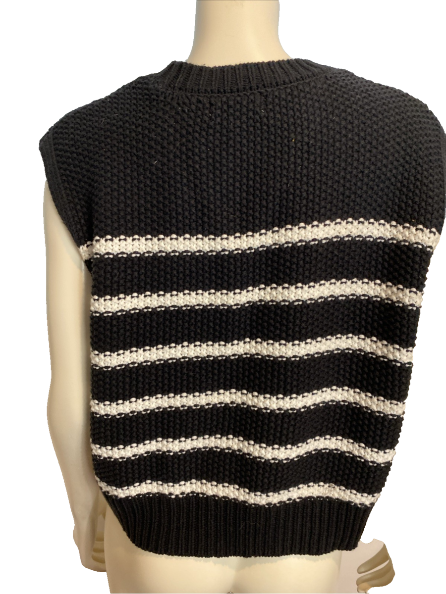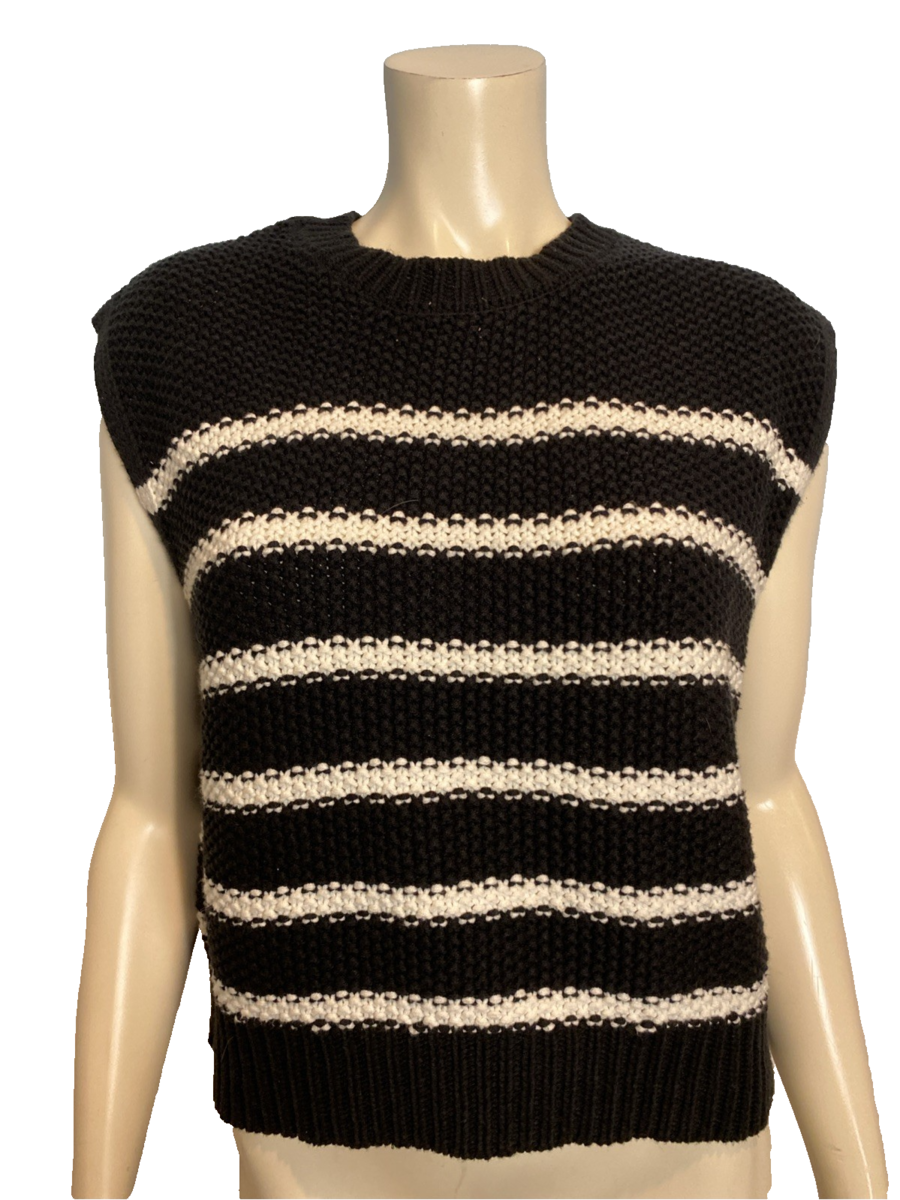 Jessica Simpson Women's Sleeveless Loose Knit Sweater Black and White XL NEW
