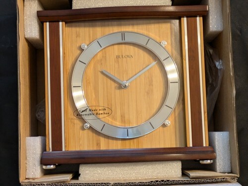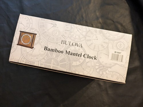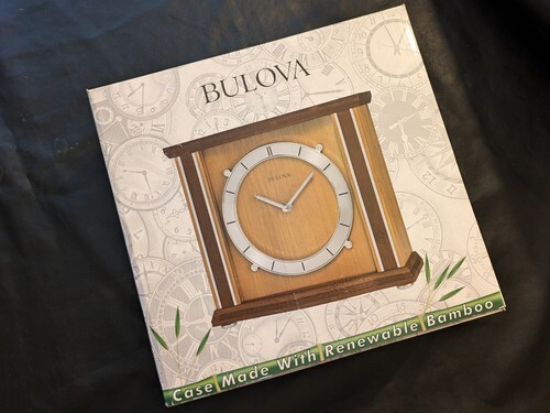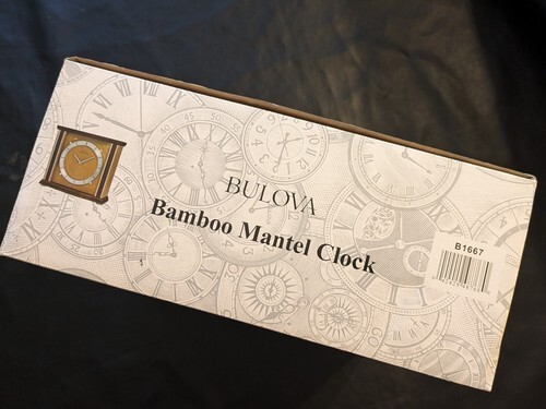 Bulova Emporia Bamboo Mantel Desk Clock Working B1667 working Box NEW