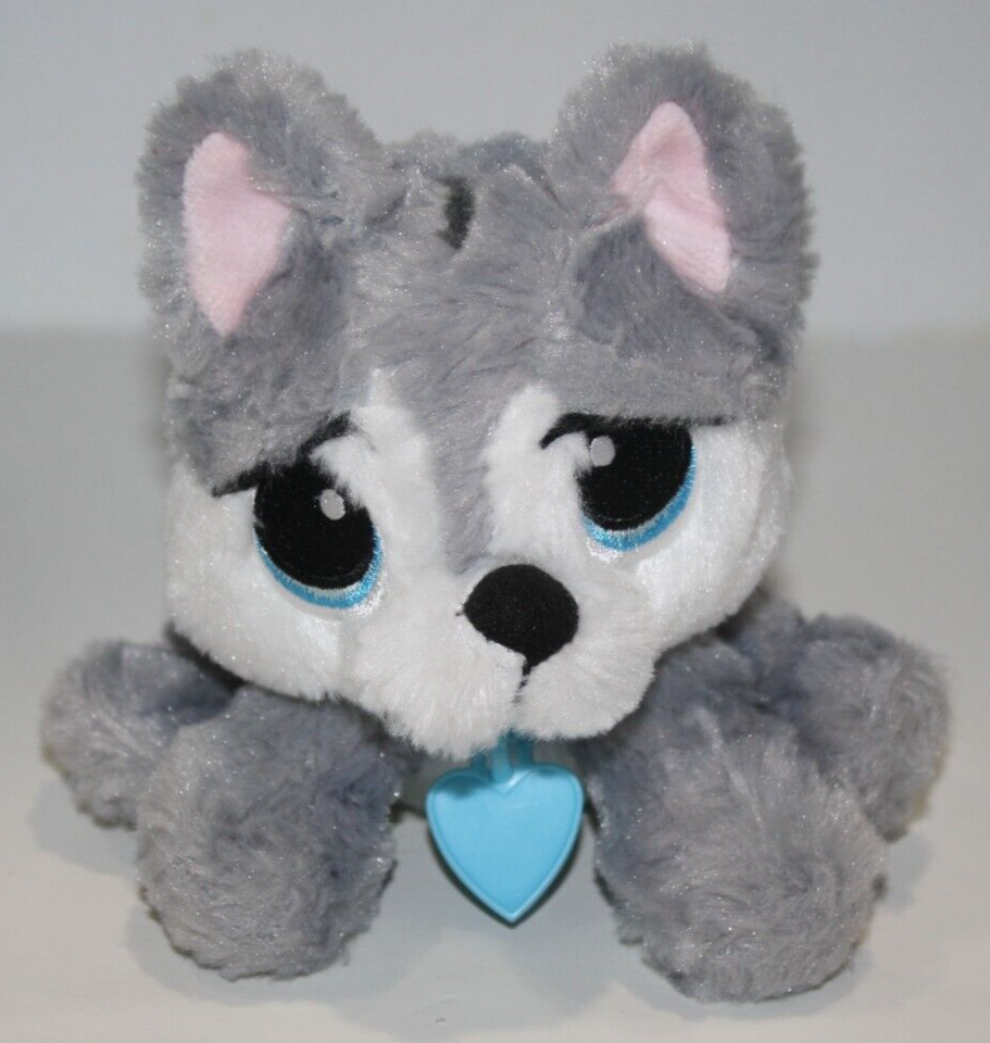 Rescue Pets, Husky Dog, Approx 6 inch, Blue Eyes, Gray Plush, Blue Heart Collar, Soft Toy, Stuffed Animal, My Pets