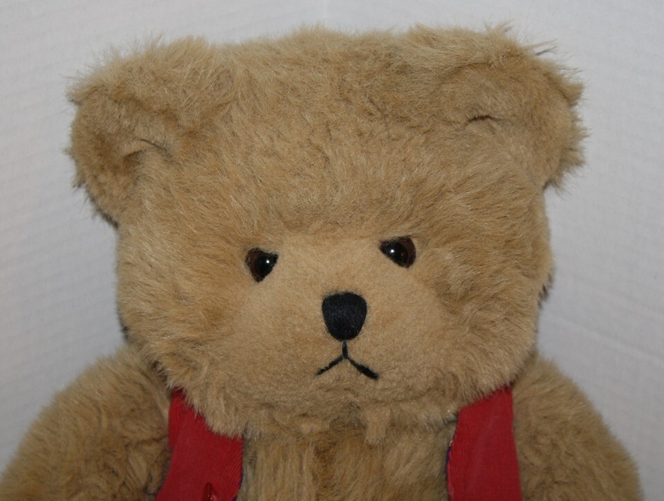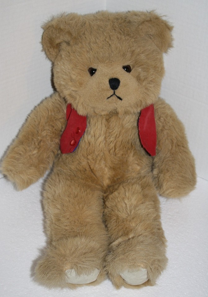 It is hard to believe he is from 1984! I had one of these as a child (small differences) and was super excited to find him again. His fur was a little scratchier than I remember and smelled odd (moth balls maybe) but he is in such good shape. I have aired him out a bit and he no longer has the odd smell. I imagine a few good snuggles will soften up his fur.