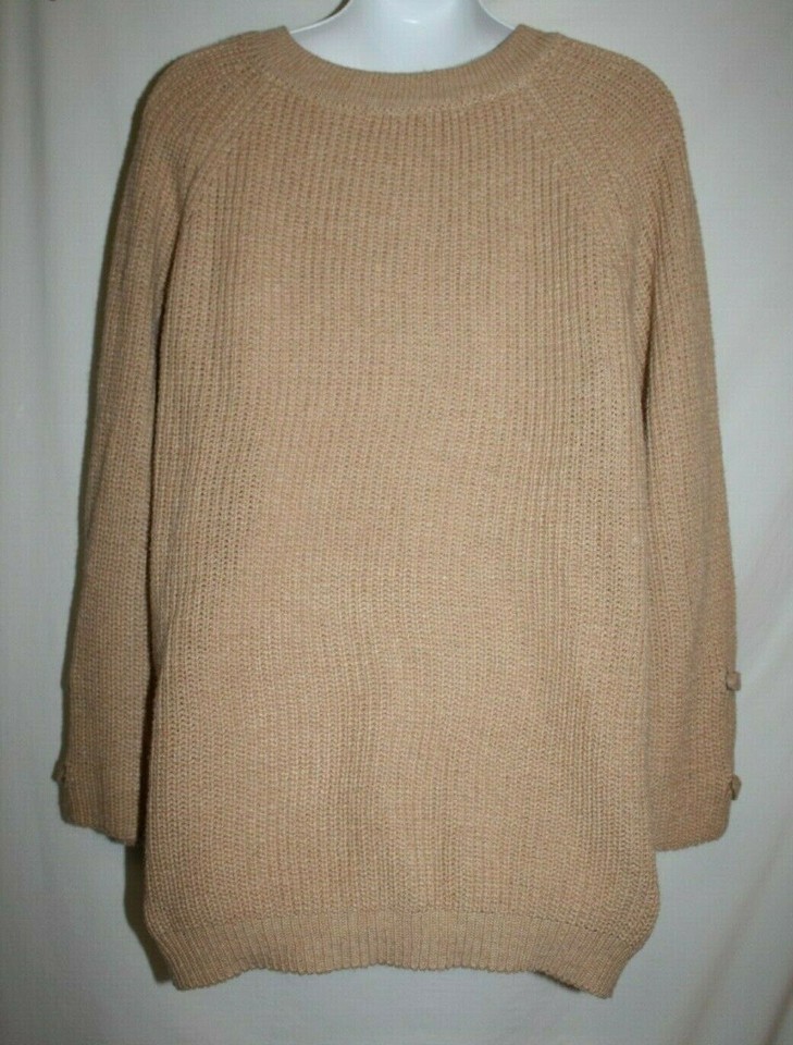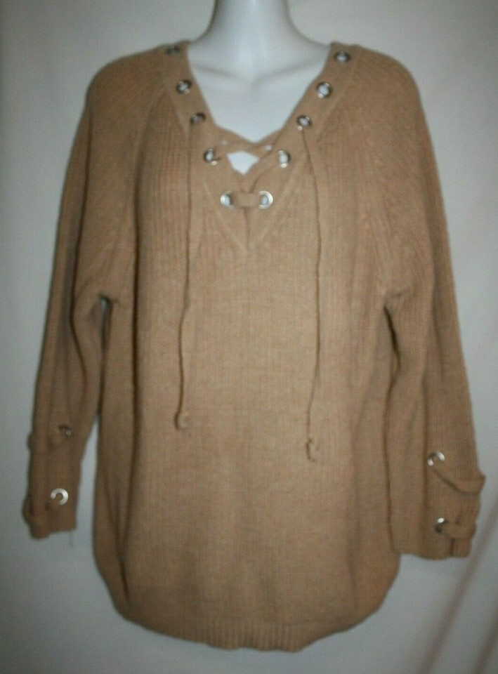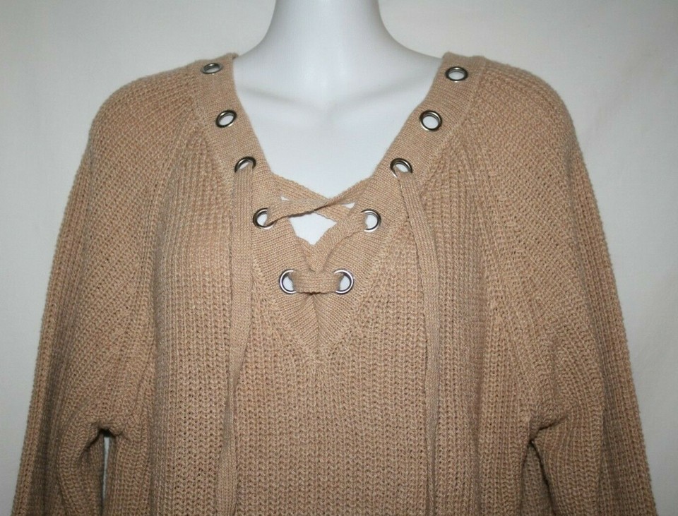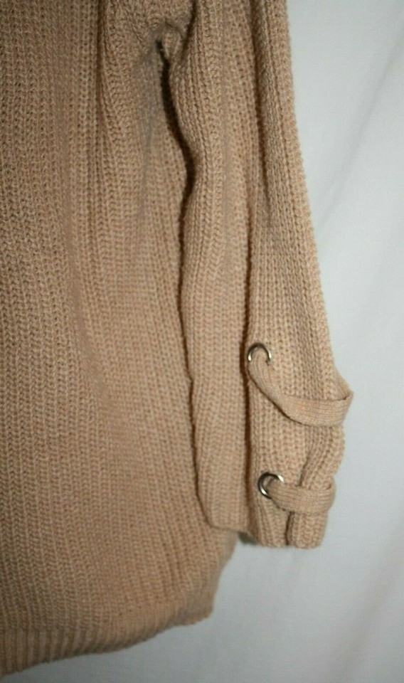 Jodifl Boutique MEDIUM Chunky Knit Tunic Sweater Beige Lace Up Grommets Neckline