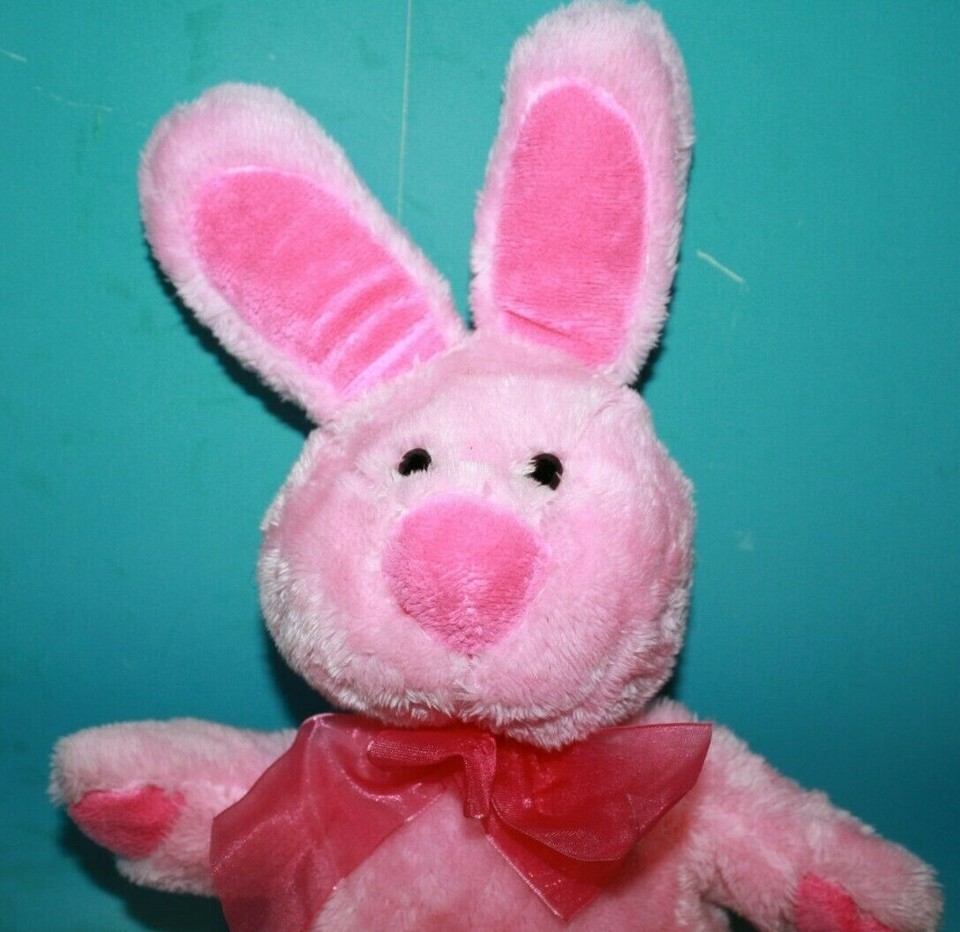 Dan Dee Easter Bunny Rabbit 15" Hot Light Pink Plush Bow 2011 Stuffed Soft Toy