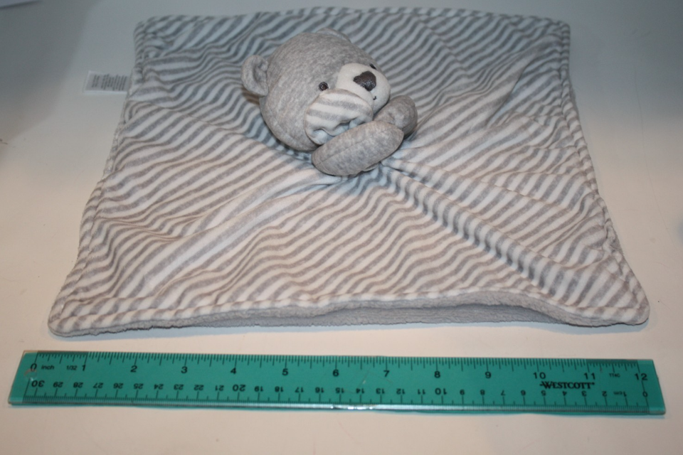 Carter's, Just One You, Teddy Bear, Gray, White, Stripe, Plush, Security Blanket, Lovey, Approx 13" x 13", Kids Preferred