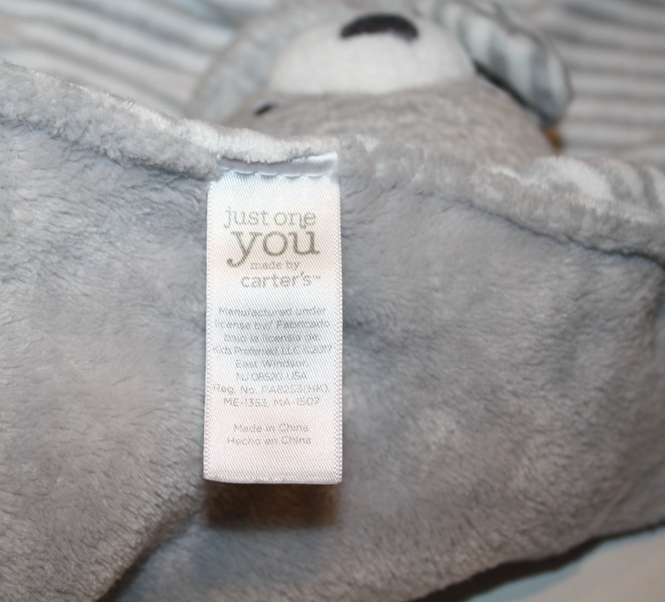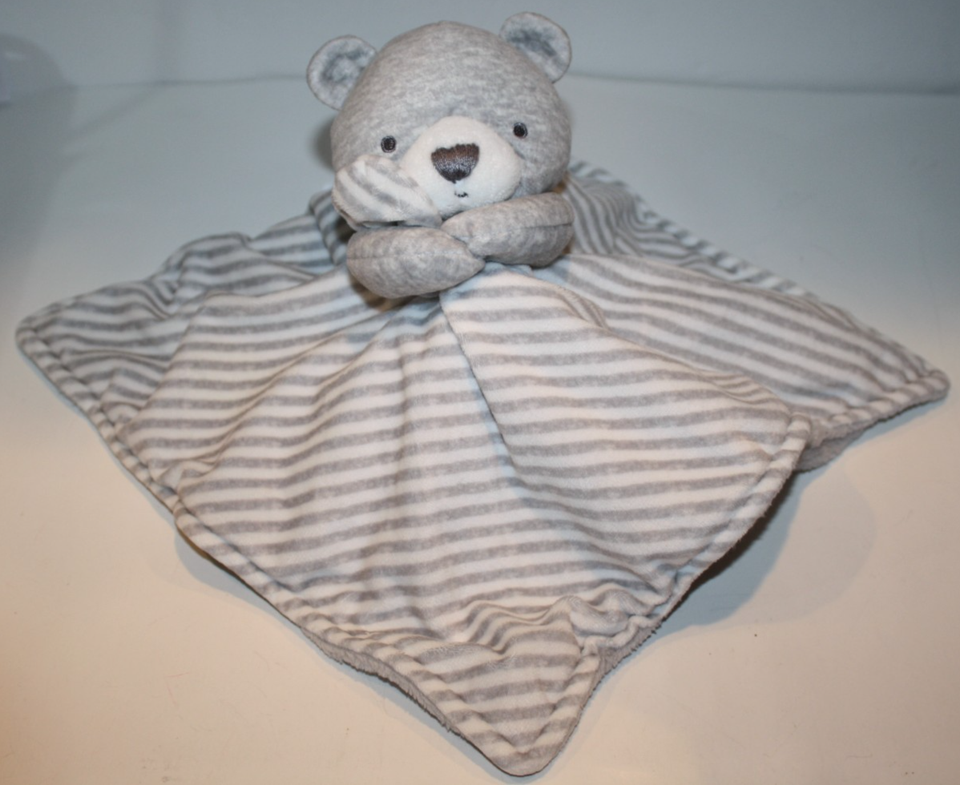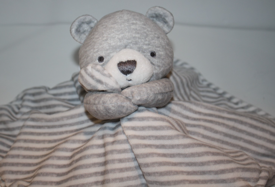 Carters Just One You Teddy Bear Gray White Stripe Plush Security Blanket Lovey
