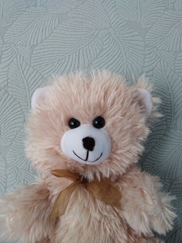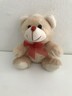 Beige Tan Plush, wearing a Red Bow, Soft Toy, Stuffed Animal