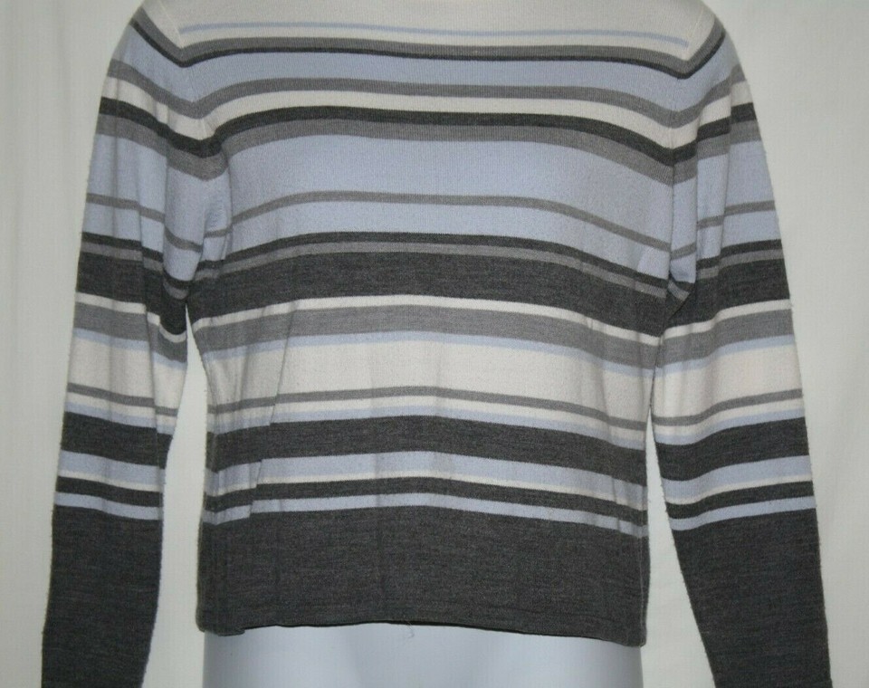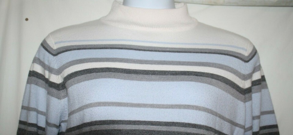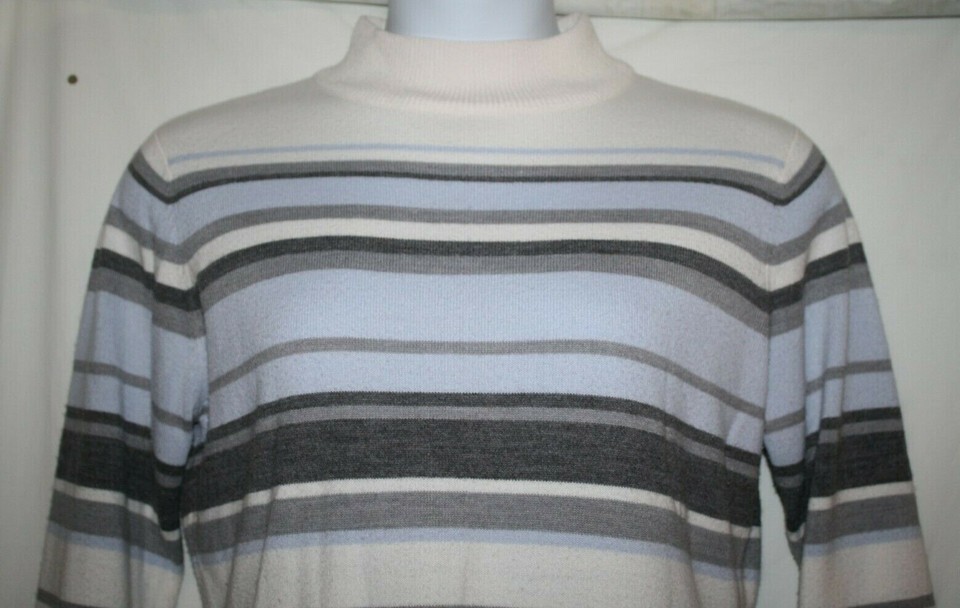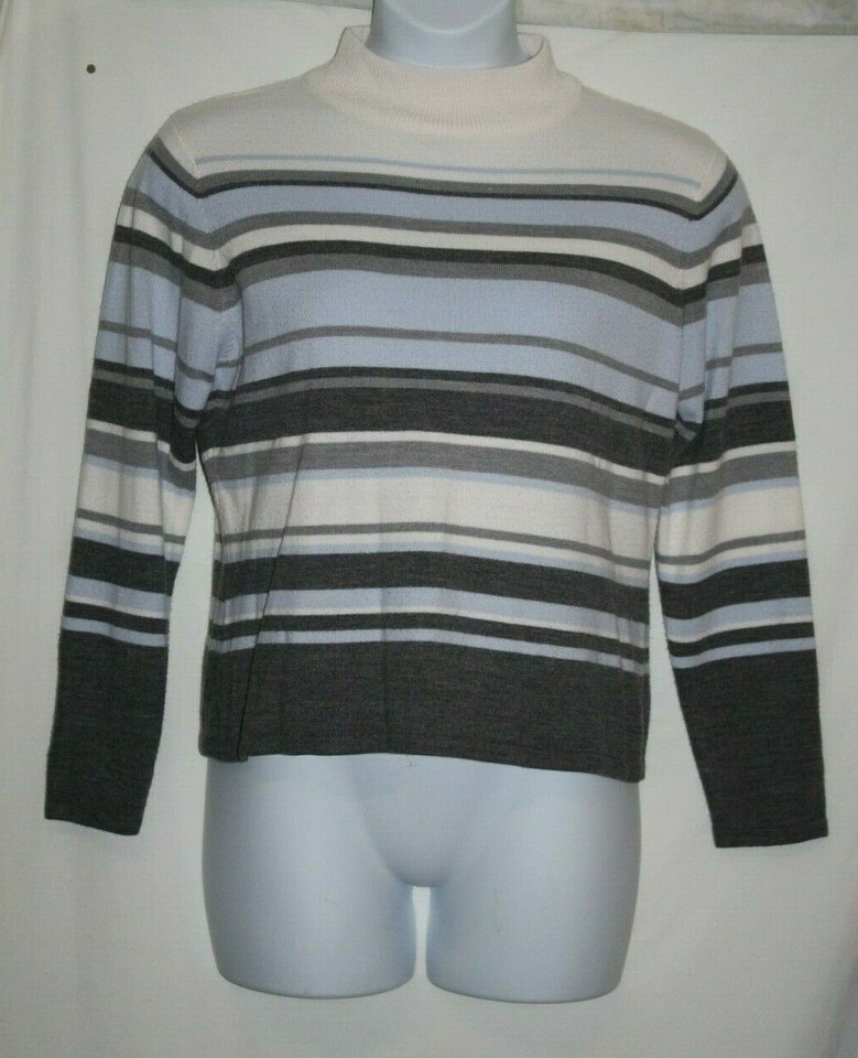 Croft & Barrow Misses MEDIUM Mock Turtleneck Sweater Blue Gray Striped Thin Soft
