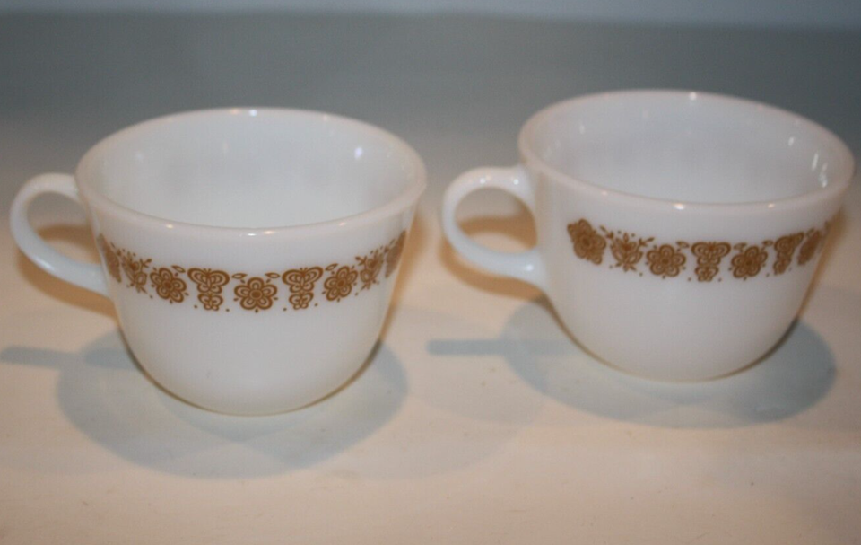Lot of 2, Corelle by Corning, Butterfly Gold Pattern, Coffee Cups, Tea Cups, Mugs, C Handle