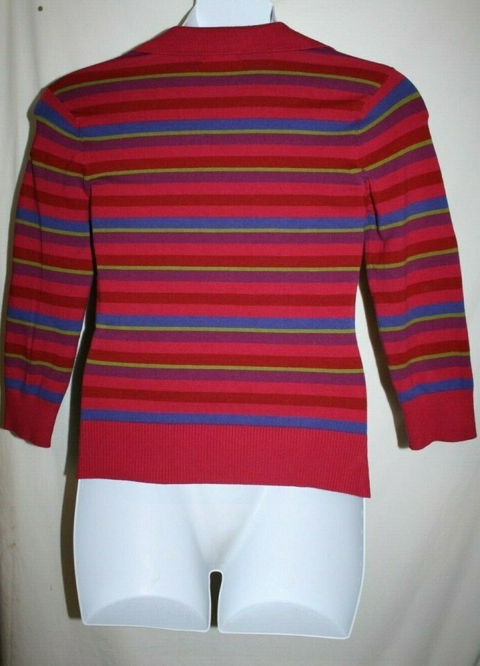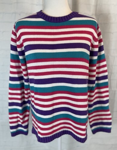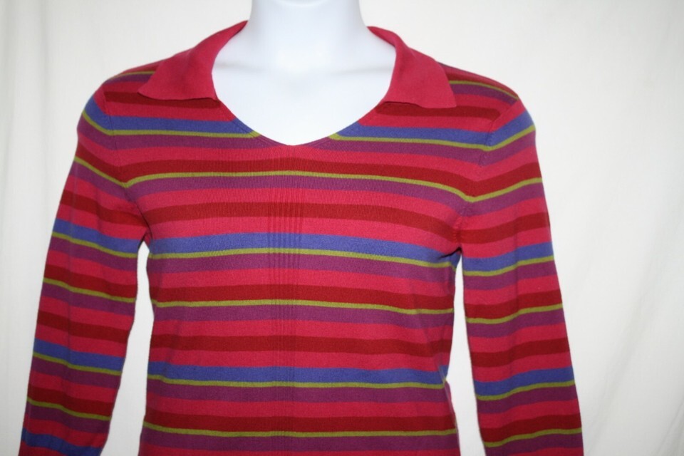 Kim Rogers Petite MEDIUM PM Purple Striped Sweater Multicolor Burgundy V Neck