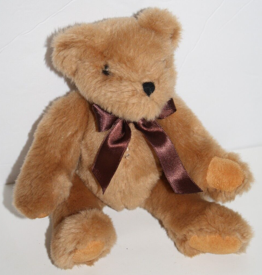 Burton + Burton Beige Jointed Teddy Bear Plush 9" Brown Bow Stuffed Animal Toy