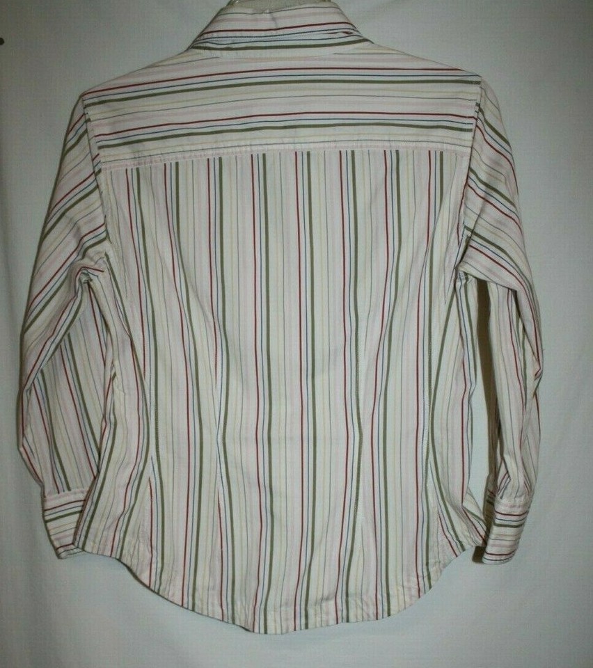 Jones New York Misses 8 Blouse Striped Stretch Top Green Red Country Essentials