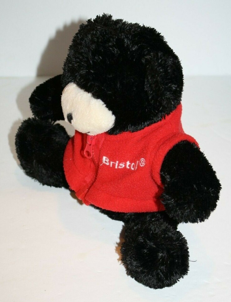 Bristol Motor Speedway Black Plush Teddy Bear 8" Red Fleece Vest Soft Stuffed