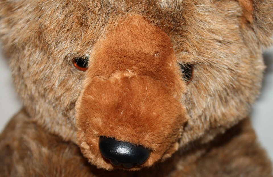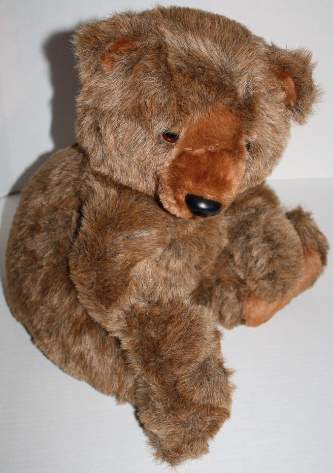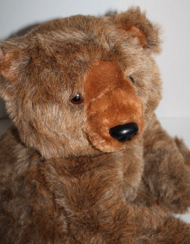 Features: Large stuffed brown Grizzly bear. Black plastic nose