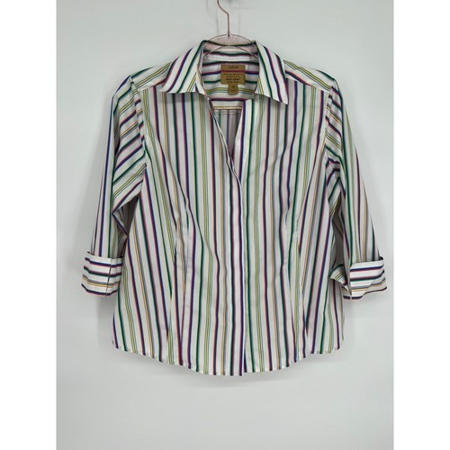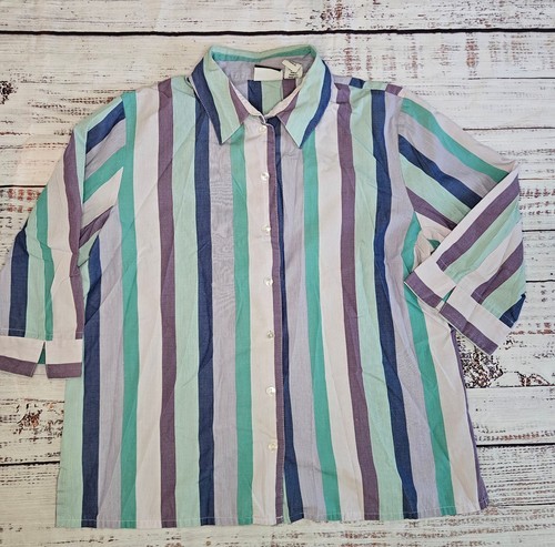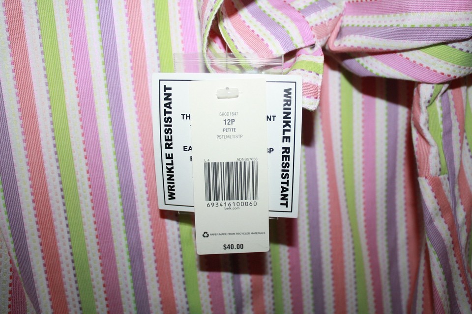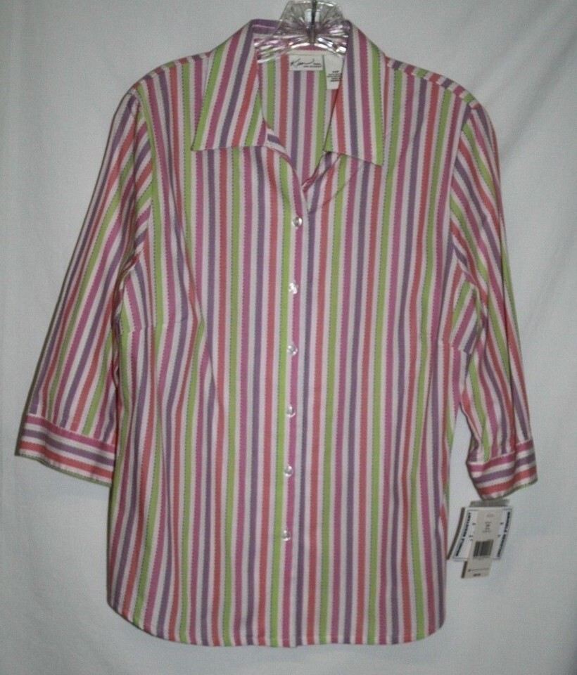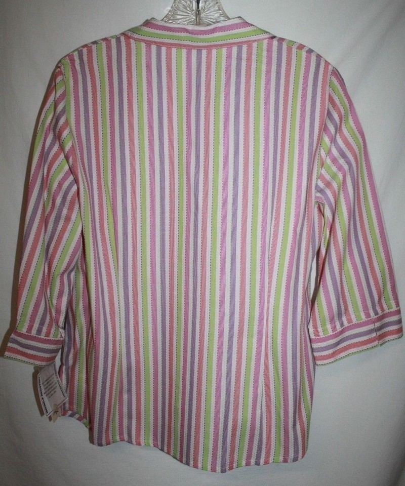 Kim Rogers Petite 12 P Blouse Pink Purple Green Striped Shirt 3/4 Sleeve New NWT