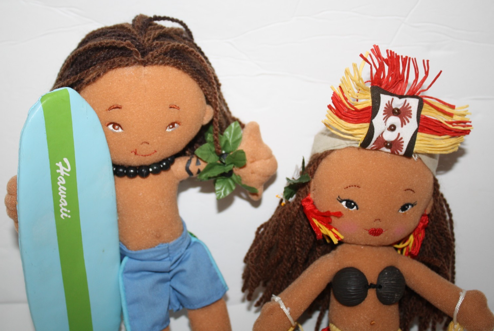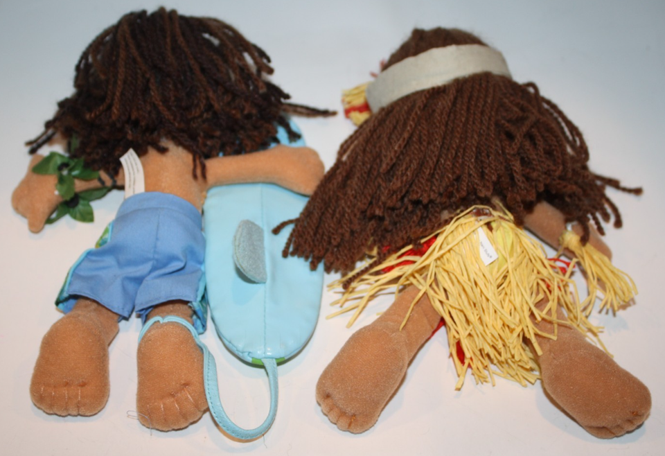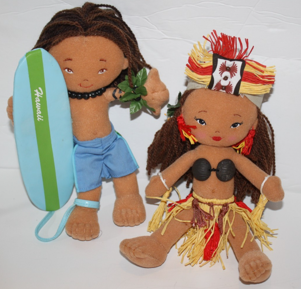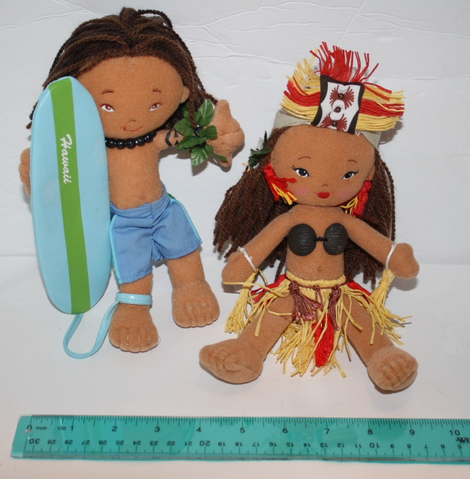 2 Island Friends Keanu Surf Board Tiara Tahiti Coconut Top Grass Skirt Girl Doll
