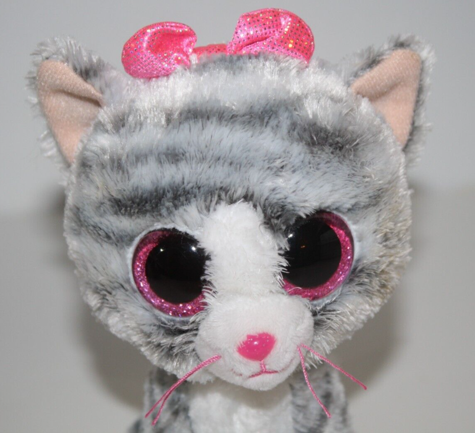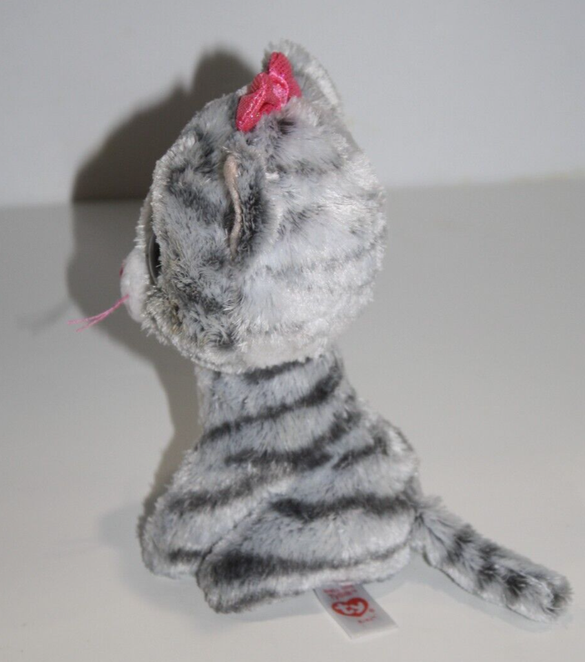 Ty Beanie Boos Kiki Gray Tabby Cat Pink Glitter Eyes Small 6" Soft Toy Plush #2