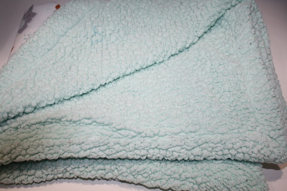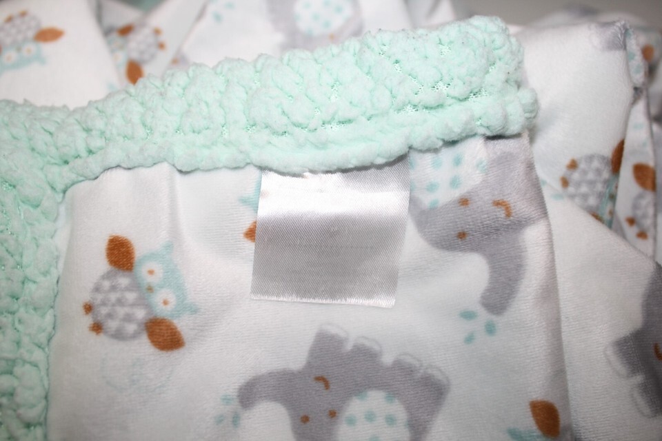 Petite L'Amour Elephant Owl Baby Blanket White Mint Green Sherpa Plush Boy Girl