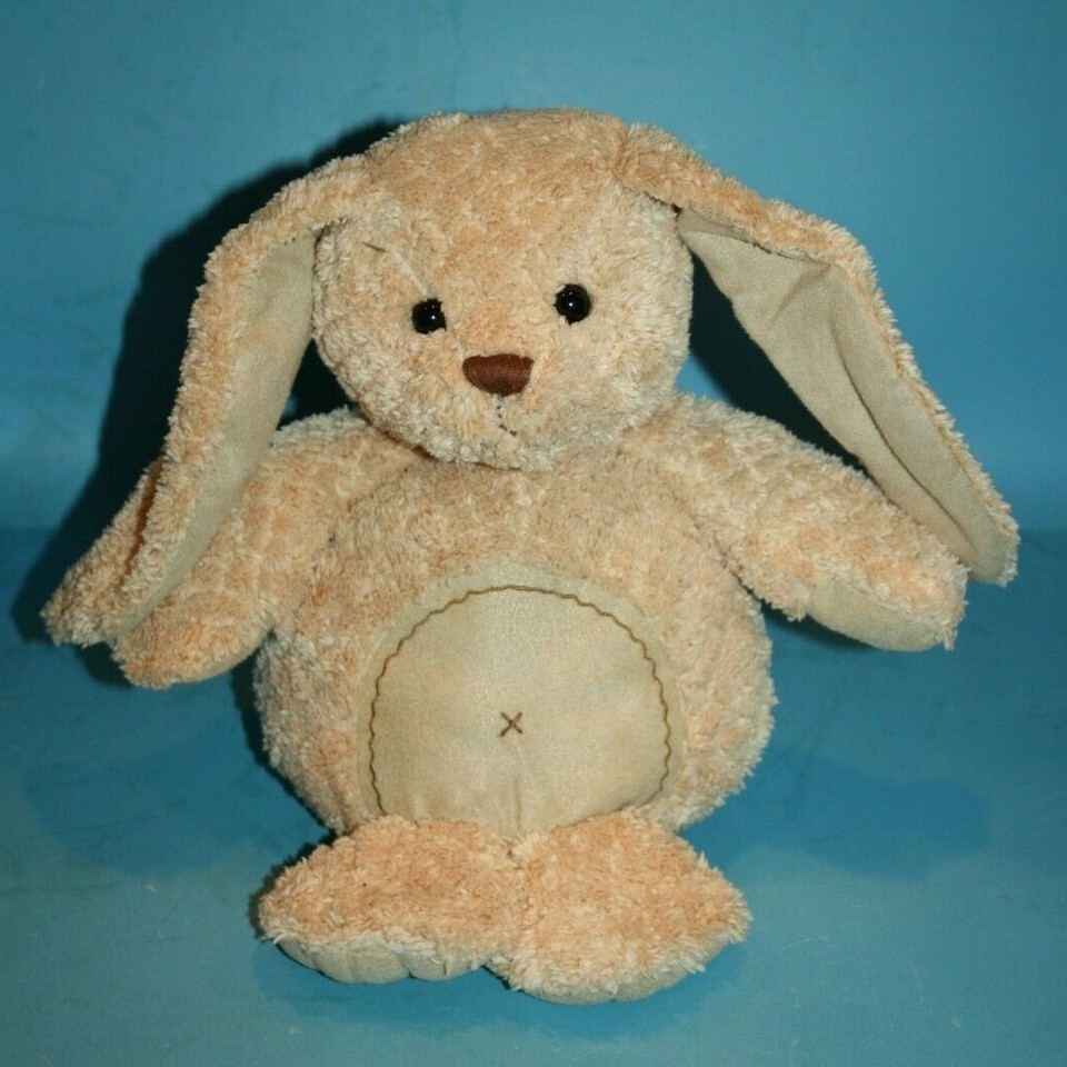 Features: Very soft Chenille plush, cuddly buttery soft tan/beige material, plastic eyes, stitched nose and mouth, faux suede inner ears, hands, feet and tummy, Soft Stuffed