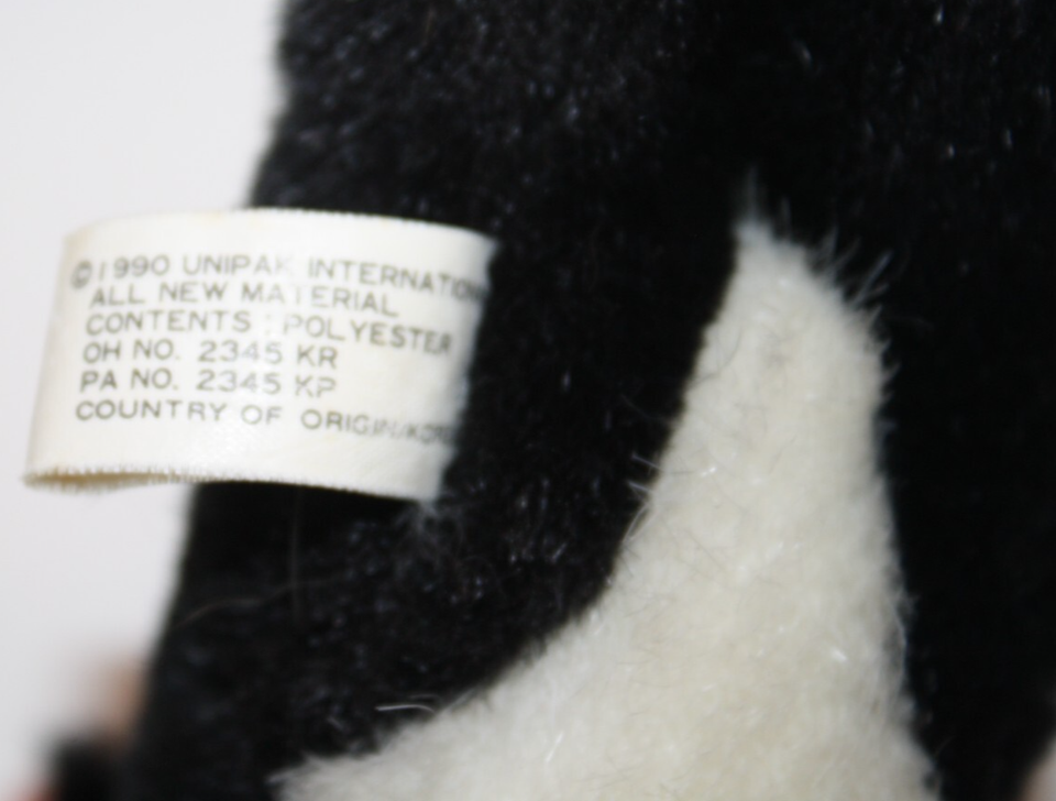 UNIPAK Baby Easter Bunny Rabbit 6" Black White Plush Stuffed Mini Soft Toy 1990