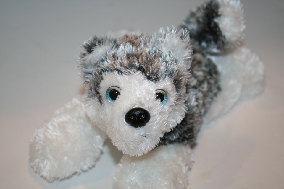 Aurora Husky Puppy Dog Silky Plush 7" Soft Toy Ice Blue Eyes Bean Bag Stuffed
