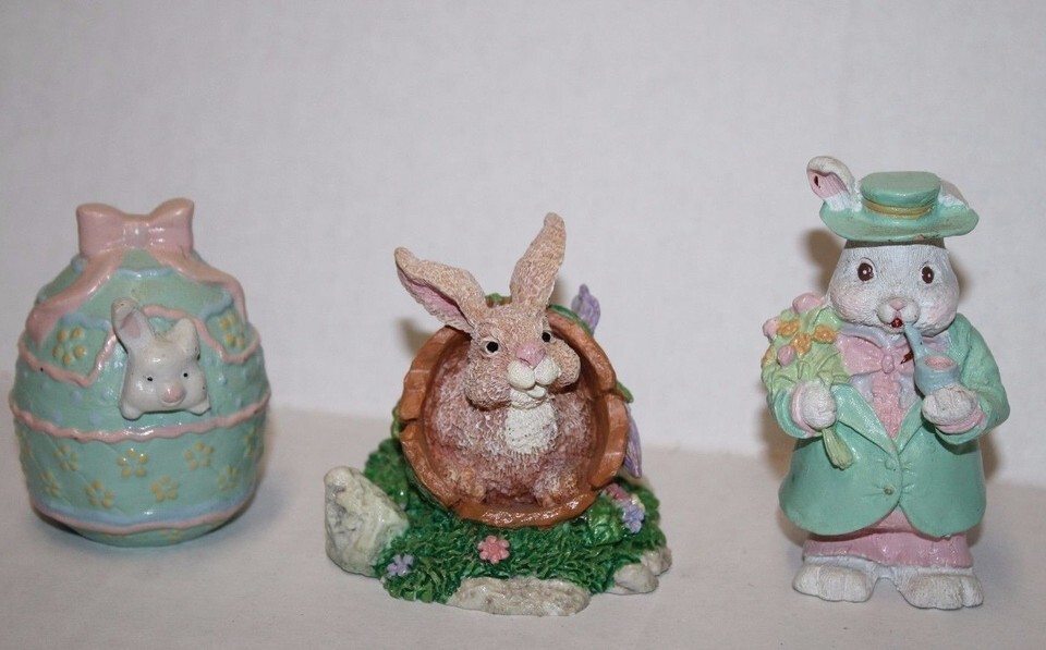 Set Spring Easter Bunny Resin Figure Flower Pot Egg Pipe Smoking Rabbit Lot of 3